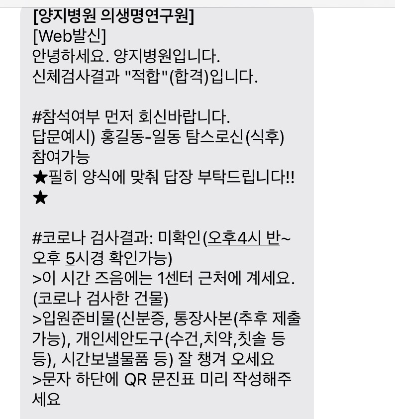 신검을 받고 당일 바로 입원 이였는데요